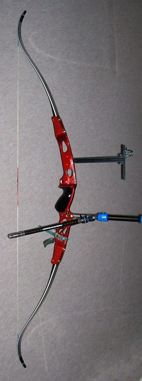 The recurve bow is a modern adaptation of the classic bow designs that have been crafted and used across the globe for thousands of years. It is the exclusive bow style featured in Olympic archery competitions. With the bow string removed, the tips of this bow curve away from the user. This curve is reversed in direction when the bow string is installed, curving the bow tips back towards the vertical. This places great tension on the bow string and is the source of the recurve bow’s power.